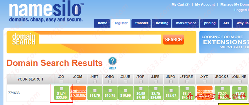 Namesilo 是国内非常著名的域名注册商家,相信很多朋友的域名也在托管在这个商家,博主两个域名就在 namesilo,商家支持支付宝和 paypal 付款,注册主流的域名(com 和 net)价格都比较便宜,近期看到商家的促销信息,本次是针对 co 域名进行促销,CO 域名也算是一个顶级域名了,位数算还是比较短的,一年只需要 1.74 美元,可以一次性购买 5 年,价格为 8.7 美元,便宜博主提供的优惠码可以立减 1 美元,最后算一下来 5 年的 co 域名仅需要 7.7 美元,折合人民币 52.7 元,每年 10 块钱就可以使用,还赠送免费的域名隐私保护,有需要的快上车吧。