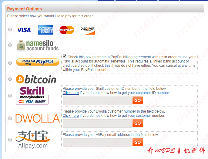 点击橙色按钮就进入支付界面。选择 paypal、信用卡、支付宝都可以,直接支付就可以了。