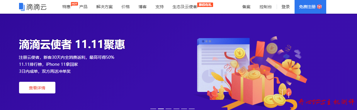 滴滴云是滴滴出行(北京小桔科技有限公司)旗下站点,提供的产品跟国内云服务器厂商大致一样,包括云服务器、存储、数据库、安全等等产品,其中主机之家测评关注的主要是云服务器。滴滴云的双十一活动时间从 10 月 29 日到 11 月 26 日,每日多款云产品秒杀,包括云服务器 DC2,GPU 等,其中云服务器单核 2G1M 年费 68 元起,2C4G2M 三年 468 元起,2C4G5M 三年 668 元起,尤其是后面两个三年套餐,还是比较划算的。