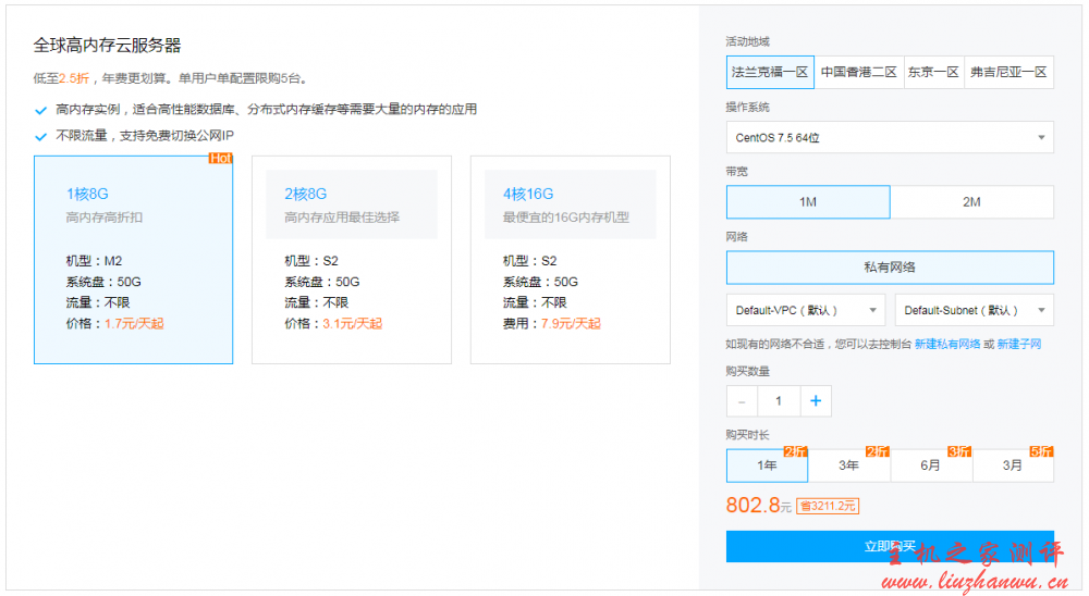 下面是高内存海外云服务器方案,最低到 2 折起,2 核 8G 内存是非常不错,5Mbps 带宽 1210.8 元/年、3632.4 元/3 年。