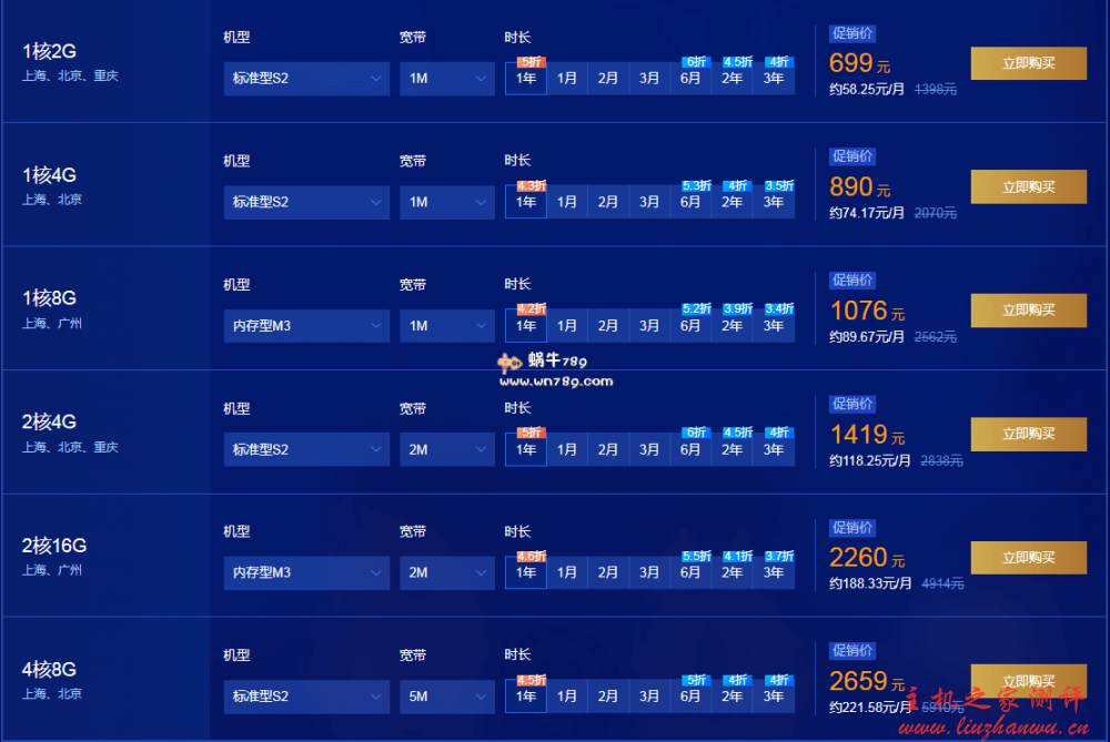 - 9 点:1 核 2G1M99元/1 年,1 核 1G1M249元/1 年(香港),2 核 4G5M488元/1 年