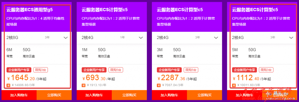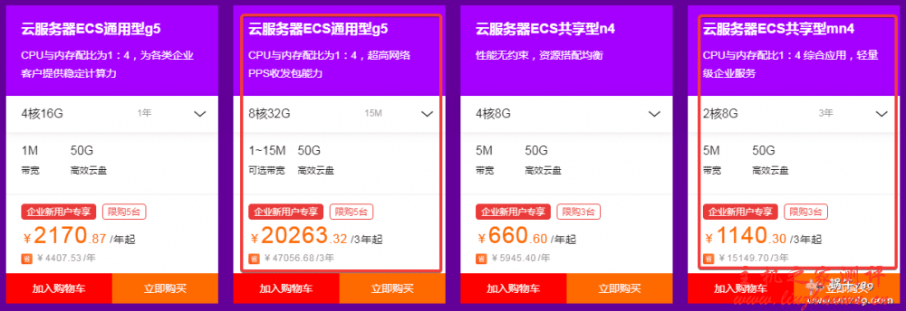 - 100%性能基线 ECS 共享计算型 n4 云服务器:2 核 4G5M、1 年 3328 元、2 年 748 元、3 年 997 元。企业认证