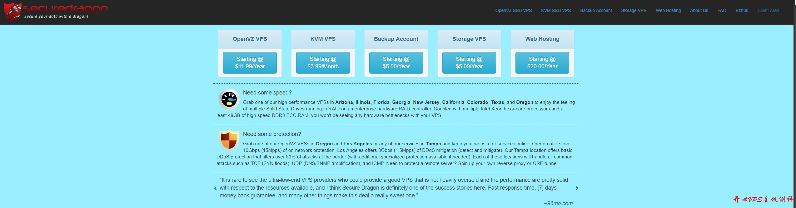 securedragon 是一家美国的主机商家,成立于 2010 年,商家主要销售的产品为虚拟主机和 VPS,VPS 有 OpenVZ 和 KVM 两种虚拟架构,同时硬盘分为 HDD 和 SSD 两个系列,数据主心有美国洛杉矶、凤凰城、芝加哥、亚特兰大、佛罗里达等,近期在 LET 看到商家发布的最新消息,新上线了 OpenVZ7 系列方案,给的硬盘比较大,而且价格方面也比较便宜,数据中心是在佛罗里达,有需要大盘机的朋友可以了解一下。